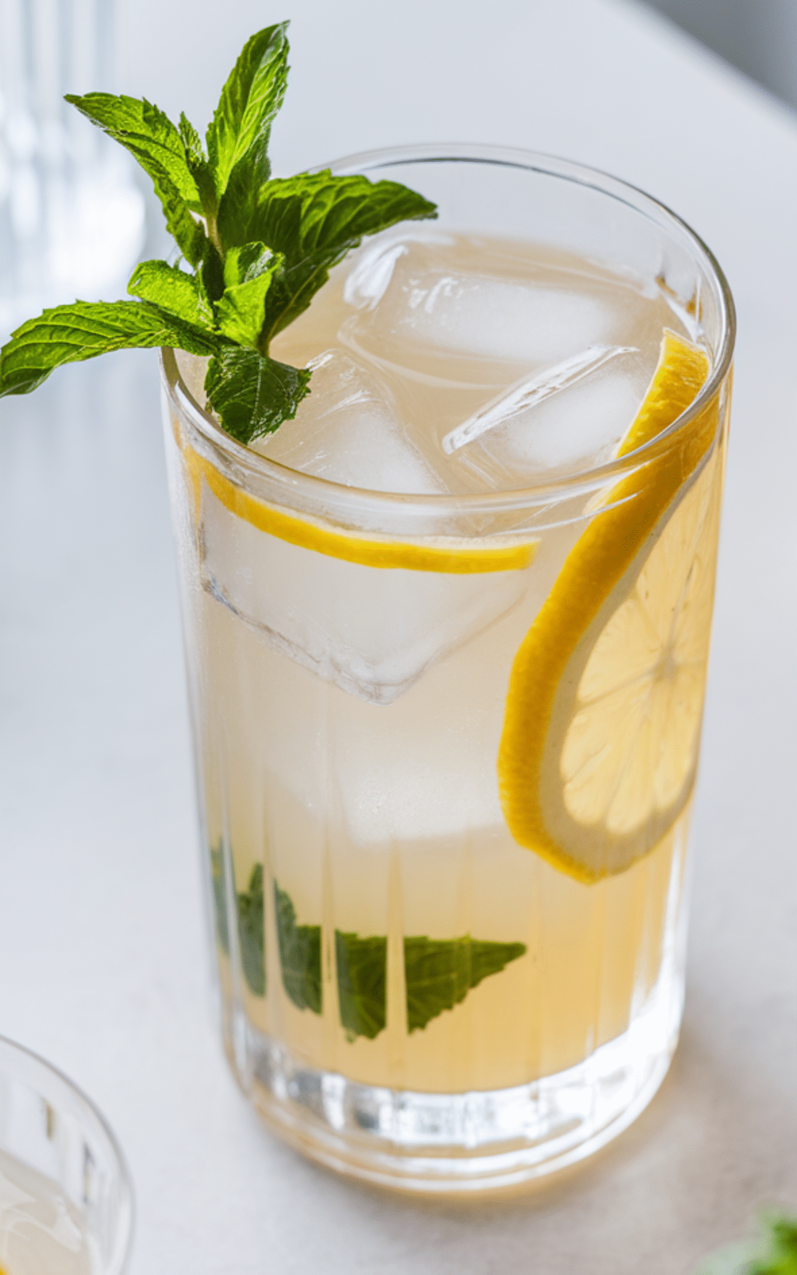 Cut a lemon and put a slice on the edge of each cup. You can also add mint leaves to make it look pretty. Pour the drink into the cups with ice. Drink it right away while it’s cold and fizzy.